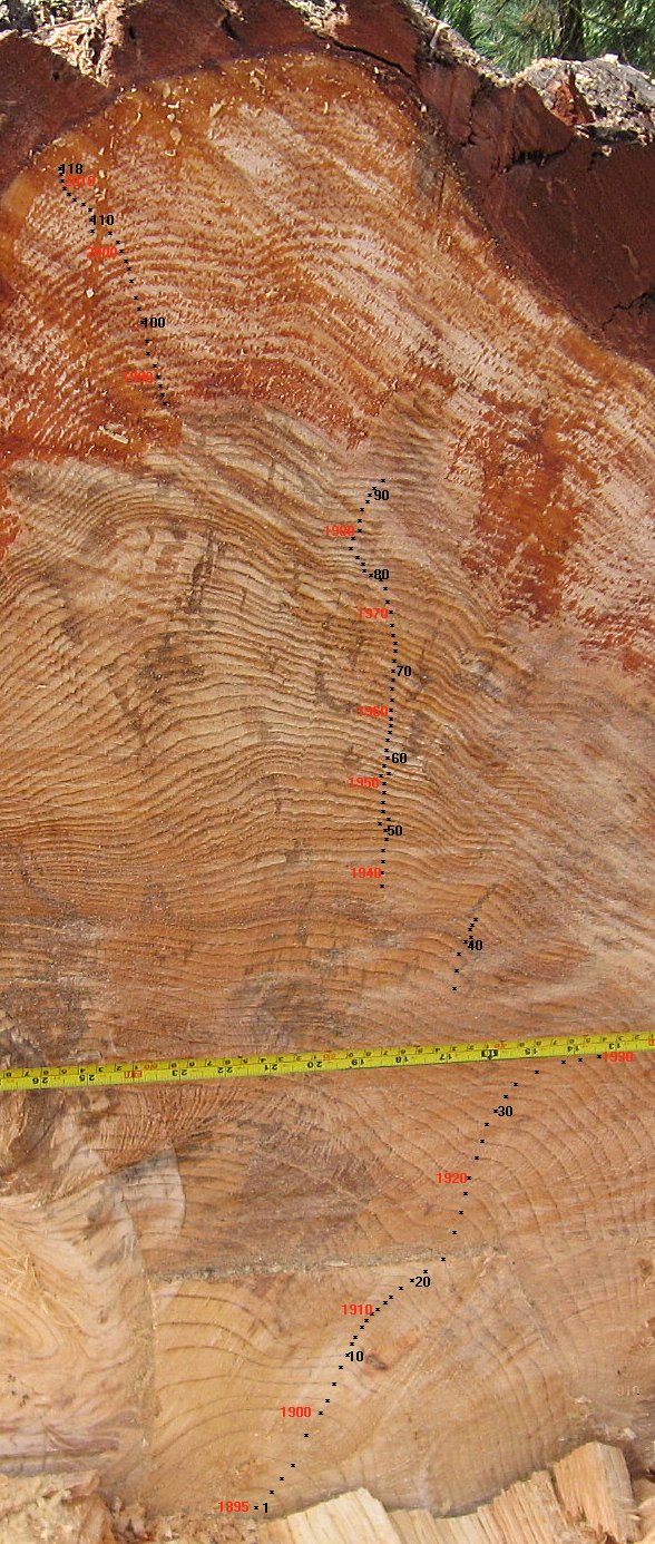 The photo was enlarged, and 118 rings counted, indicating
