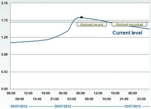 Wimborne peak of 1.78 metres at 0600 hrs on 09jul2012