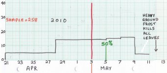 Progress of Oak Leafing in Plantation. |