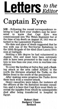 son, Captain William Eyre, who died at Alexandria on August 19th,