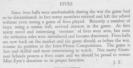 Mrs Eyre's gift is going to be used to build a Fives Court, which