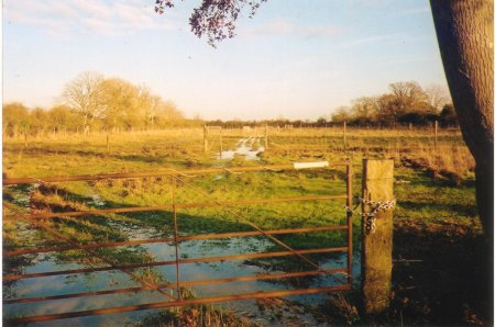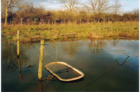 3dec2005. Only the pond spoil heap is dry, 3 straw bales have floated East.