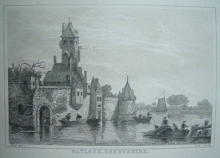 Does anyone who knows Matlock know where this incredible building and river are? It is supposed to be a print from "Curiosities of Great Britain, England & Wales Delineated" by Thomas Dugdale, published by L. Tallis, London, c.1845. Did the River Derwent ever have such big sailing boats? Were there ever such big rowing boats?