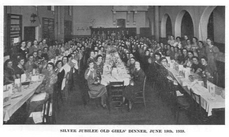 "In the courtyard the percussion band, trained by Miss Froggatt, gave two performances, and on the field a striking display of mass drill, arranged by Miss Parker, was given by the upper forms. Visitors were entertained to tea, provided and served, as was the Old Girls' Dinner, by Messrs. G. Howard & Son. "The guests were delighted with the appearance of the grounds, especially that of the newly-made rockery (the result of Miss Carter's and the girls' manual endeavours) with bright masses of orange and blue. The air was full of kindly inquiries, of reminiscences, and the exhilaration that comes from old acquaintances renewed. "So far as the main school was concerned the jubilee celebrations culminated in the service of praise and thanksgiving held at the East Retford Church on Saturday morning and conducted by the Vicar of East Retford, the Rev. F.C. Harrison (assistant curate) and the Rev. C.W. Limb (Methodist Minister). "The church had been decorated, under the direction of Miss Molly Bradshaw, an old girl, with vases of golden, blue and white flowers among green leaves, in order to bring into the service the colours chosen to represent the periods under the four headmistresses. Among the visitors were the Mayor and Mayoress, Miss Arblaster, Miss Bradshaw and other governors, and a large number of past staff and girls. The school was addressed by the Right Reverend the Lord Bishop of Southwell, who took as his theme the text, 'Knowledge puffeth up but love edifieth'. The address was followed by an organ voluntary played by Miss Froggatt, and during this a collection, which amounted to £14, was taken by the school prefects. The service ended with the singing of the hymn which the school looks upon as particularly its own 'Our Father by whose servant Our house was built of old.'