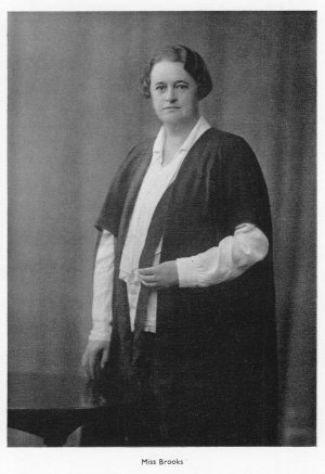 In April 1928 Miss Brooks resigned. She had been appointed Headmistress of Malvern Girls' School. To secure a successor advertisements were inserted in "The Times Educational Supplement", "Education" and "The Spectator". The candidates were to be under forty years of age and Honours graduates of a British University. From the particulars issued to candidates we garner further information about the school at this period. There were fourteen mistresses on the staff, including a full-time Music Mistress and a Physical Training and Games Mistress. The minimum age of entry to the school was nine. The final selection and interview was held on June 19th, 1928. Six candidates were interviewed and from these Miss Edith Mary Mellor of St. Felix School, Southwold, was chosen as Miss Brooks' successor. Miss Brooks' departure coincided with the resignation of Miss Millie, Miss Phillips, Miss Dolby and Miss Dickinson. This was a bad blow to the school and left the staff sadly depleted. Speech Day was held on July 25th, 1928. Referring to Miss Brooks' impending departure Miss Bradshaw in her opening address said they would be deeply sorry to lose her. Miss Brooks would not easily be forgotten. She would leave behind her a vivid memory of splendid powers of organisation united with an equally splendid capacity for hard work. Such capabilities did not always go together, neither did they always find, as they had found in Miss Brooks, a long and wide vision of the work that needed to he undertaken, united with a keen eye to practical details. Miss Brooks had given that and much more, with a lavish hand, and the school owed to her a great debt of gratitude. The Director of Education who spoke later in the proceedings was equally grateful to Miss Brooks. "She was", he said, "an exceptional person with a tremendous power of making things go. They could do nothing more than wish her God-speed and every success in her new sphere, at the same time offering their deep thanks for the excellent work she had done at the school". In 1928, five girls, an unprecedented number, were awarded scholarships. Gwen Edgeley: Sheffield University Corporation Scholarship (English, History, French) £30 for three years. State Scholarship awarded on the Higher Certificate Examination. Kathleen Lamin: Middlesex Senior County Scholarship (French and Geography) £25 for three years. Highly commended in Westfield Scholarship Examination in French, being second on the list. Gained 75% in Geography in the London School of Economics Examination. Kathleen Metcalfe: Horticultural Scholarship to the Midland Agricultural College. Sybil Pearfield: Oxford Home Students Scholarship in History (first on the list) £50 for three years. Notts Senior County Scholarship (History, English -first on the list in both subjects, French)£80 for three years. Awarded Home Students Training Grant Oxford Responsions in Latin. Mary Tate: London 1st M.B. (distinction in Biology), Robert Owen Medical Scholarship, £75 for three years. Notts Senior County Scholarship (Chemistry, Botany, Mathematics) £60 for three years. Anonymous Scholarship, £25 for four years. These achievements, and many others unrecorded, are evident testimony of the school's success under Miss Brooks and of the ability of both staff and pupils. Soon after her departure Miss Brooks presented £2,000 to the school to be used over a period of eleven years. This was the origin of the Brooks Scholarship. The award which was to be of £60 for three years was to be made each year. Preference was to be given to history scholars but if there was no likely history candidate it was to be donated to some other subject. Miss Brooks was evidently a historian as indeed was her successor, Miss Mellor. The scholarship could be held at any university but preferably by a resident. The award was to be made available to any girl then in school, personally known to Miss Brooks. Sybil Peatfield and Kathleen Lamin were the first (joint) recipients of the award. To fill the vacancies created by the departure of those who left with Miss Brooks, four new appointments were made in October 1928. They were Miss Parker (Gymnastics), Miss Foster (Latin), Miss Parry (Physics) and Miss Dobbs (French). Miss Watson left at the end of the year and Miss Foster was appointed in her place. Miss Watson had been on the staff for many years and was given a special presentation. Miss Mellor presented Miss Watson with a walnut bureau, from the girls, a walnut clock from the staff, and a crocodile handbag and a weekend case from parents and old girls. Malvern seems to have had a great attraction for the staff at this particular time for it was there that Miss Watson went too, to become Headmistress of Malvern Girls' College, a boarding school for nearly a hundred girls, ranging from six to thirteen years in age, which in fact fed the High School to which Miss Brooks had been appointed. In 1928 Miss Mellor asked the governors' consent to open a nursery school for children from three to six years of age, "such as is in vogue in London and other large centres". Permission was granted for one year provided the governors could withdraw their consent if they so wished. It was at this time that the school, in conjunction with the Grammar School, first acquired a part-time secretary to relieve the Headmistress of the large amount of clerical work. The Magazine for 1929 is full of interest. On July 2Oth, 1929, a fete was held at the school, the proceeds of which were to pay off the debt for the tennis court and to argument the Emergency Fund. There was a bazaar which was opened by Mrs. Kayser of Eaton Hall, and a palmist was in attendance. The girls entertained the visitors with some ballet dancing and two plays in which both staff and girls participated. Both these were costume plays, one "A Privy Council", dealing with an escapade of Samuel Pepys, and the other, "The Fantasticks", with a wily plot of two old gentlemen of the eighteenth cen