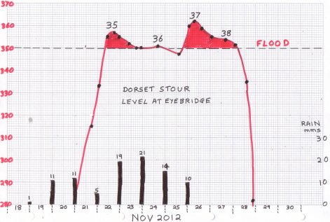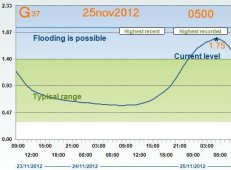 and 38: 0800 26nov. Each peak caused flooding further downstream,