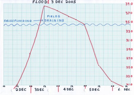 The peak of the Flood was about 1200 hours on 3 Dec 2005. The river