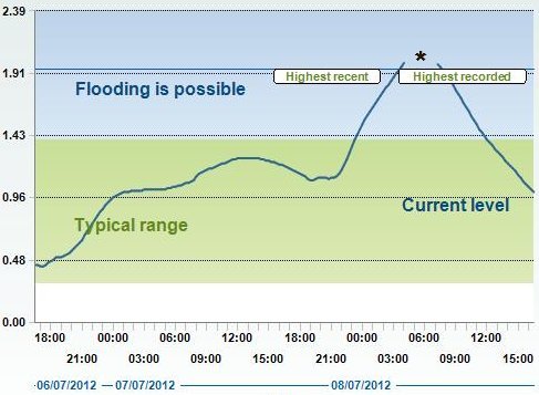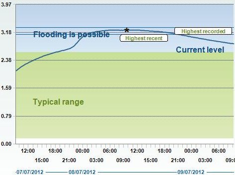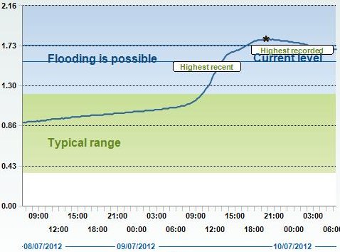 Wimborne peak of 1.78 metres at 0600 hrs on 09jul2012