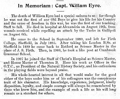 son, Captain William Eyre, who died at Alexandria on August 19th,
