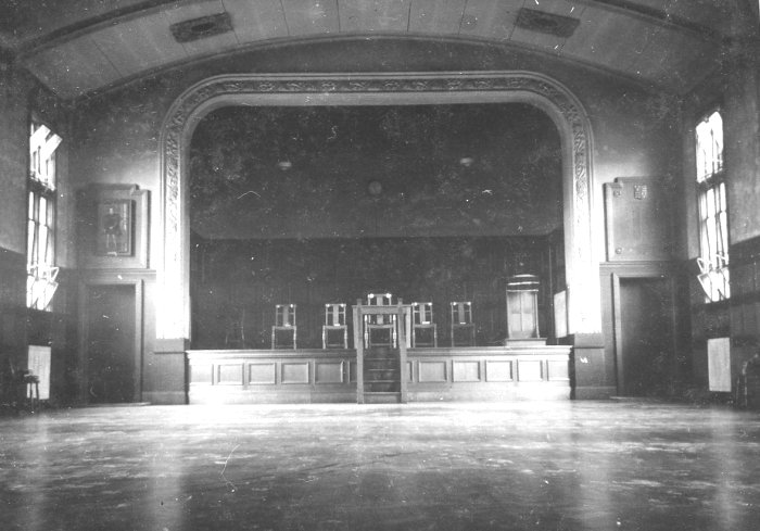 The Assembly Hall, built about 1938, with copy of Edward VI's picture on the left. (Thanks to David Dickinson for photo)