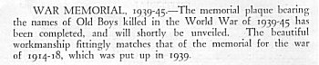 ex-pupils who died in WW2. Today (2015) both plaques and the