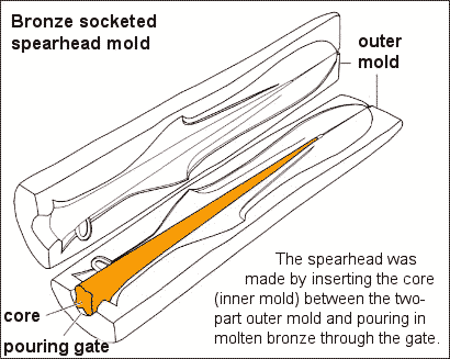 One half of a bronze mould for casting a socketed spear head, found