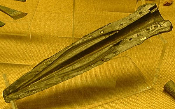 A similar spearhead is held at the