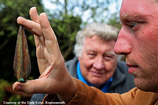 First published in News HISTORIANS searching for clues that will lead them to the site of an ancient mill have unearthed a 3,000-year-old spearhead on the site of a private nature reserve. The land, once an unwanted flood plain, was transformed into an idyllic space by Corfe Mullen man John Palmer 12 years ago after it failed to attract any bids at auction. After planting 500 oak trees on a stretch of the 25-acre site, Mr Palmer set about uncovering some of the land's secrets. The 74-year-old said: "One of my interests is building websites, and I have designed one that tells the story of Bear Mead. "Through that website, I received an email from three men who were interested in locating the site of Lake Mill, which I believe is the site of the mill for Corfe Mullen mentioned in the Domesday Book. There would be nothing to see there at all any more, but they were interested in bringing their metal detectors onto my land, and of course I said that would be fine. They had barely started searching when they found the spearhead." Research conducted by historians has revealed that the spearhead was created in the Bronze Age - a span of time stretching between 1500 BC and 700 BC. As such, it is predicted to be 3,000 years old. The artefact weighs just 65 grams, and is made up mostly of copper ore from Wales. Around 10 per cent of the spearhead is made of tin, mined in Cornwall. Mr Palmer said: "We made an agreement together that the spearhead should go to the Priest's House Museum in Wimborne for safe-keeping. "Shortly it will be available for public viewing at the museum." It's not the only find made on the reserve - Mr Palmer also discovered a one-tonne monolith lying flat in the earth during the winter. Although not deemed to be of historical significance, the monolith, created from rock quarried in Purbeck, is suspected to have been ferried to the site by water many thousands of years ago. A length of "peculiar" wire found on the borders of the land was also uncovered as Mr Palmer and his wife worked to clear hedges and ditches at the reserve. It is believed that the former owner would have had to place the wire around the land when an enclosures act was passed in 1813, making it a requirement for landowners to fence off their property. |
