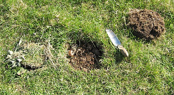 About 7 cms below grass surface, on gravel sub-surface,