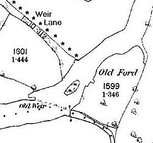 an old ford just West of, that is to say, above, the spot at which the river