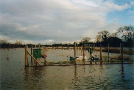 3dec2005. Only the pond spoil heap is dry, 3 straw bales have floated East.