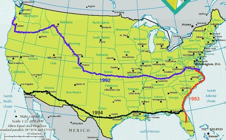 In 3 years, with 3 different buddies, I bicycled 3 sides