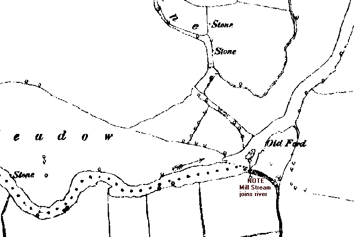 just below the present Weir. The Old Mill (now disappeared) lay where the